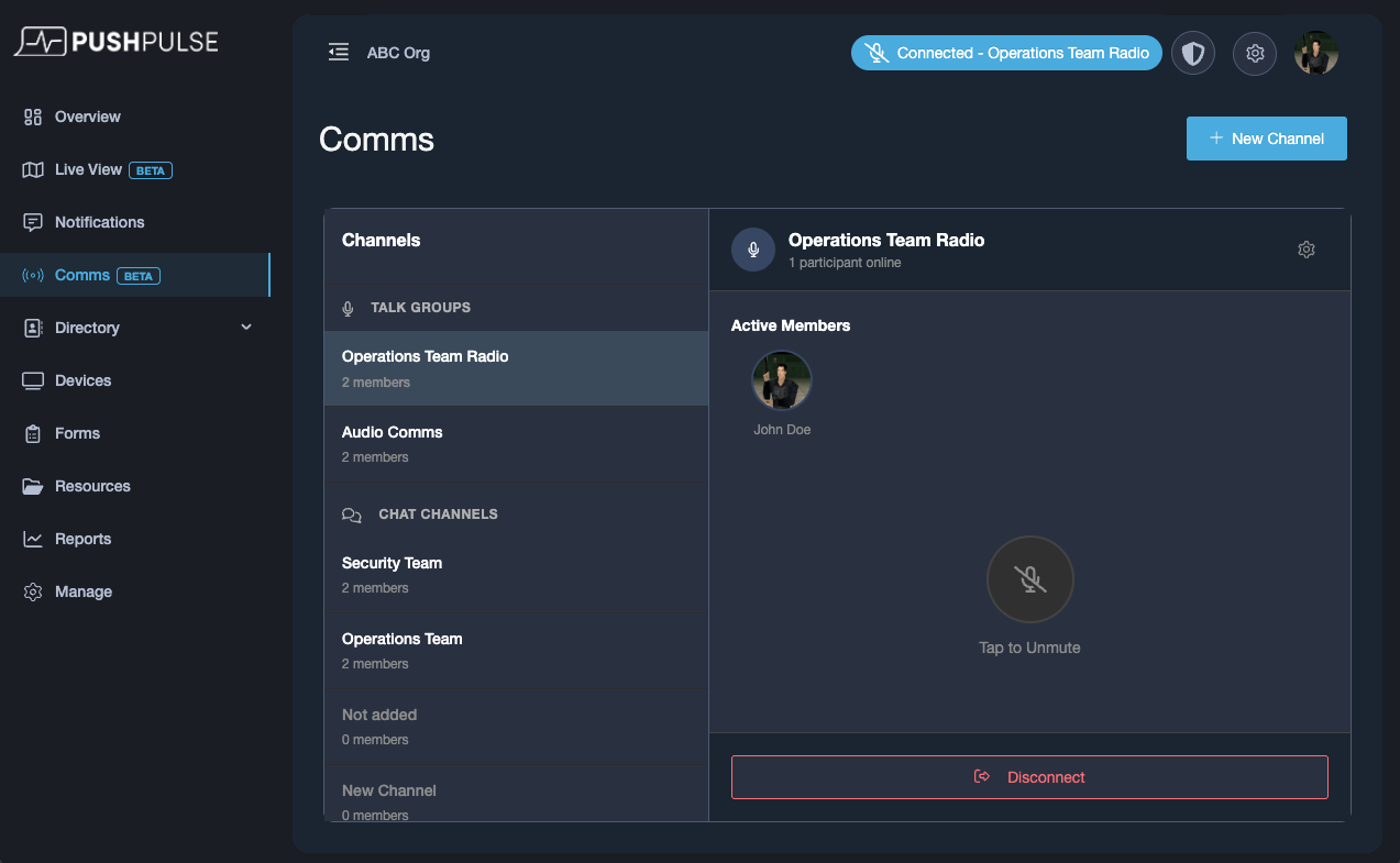 Comms is now expanding beyond mobile and into the PushPulse web app, giving dispatchers, administrators, and other team leaders a more accessible way to communicate and coordinate in real time. With audio communications and chat available from the web, teams can stay connected from their desks just as easily as they do in the field, creating a more seamless communication experience across devices.